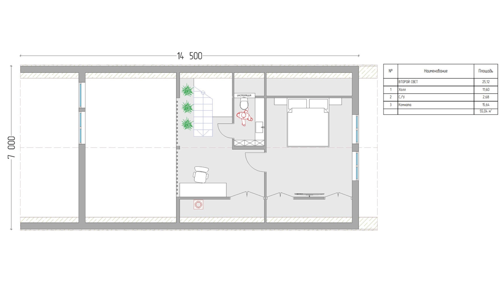 Каркасный домокомплект · 64 м²